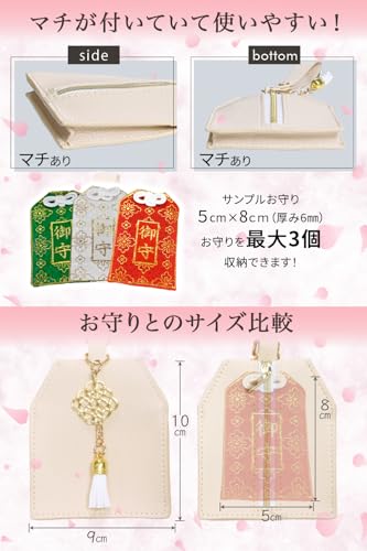一般的なお守りのサイズは縦8cm、横5cm程度ですが、最近では小さな安産守りや大きな交通安全守りなど様々です。 ポーチの中で泳ぎすぎてお守りが折れ曲がったり、逆にキツすぎて形が崩れたりしないよう、少し余裕のあるサイズを選びましょう。